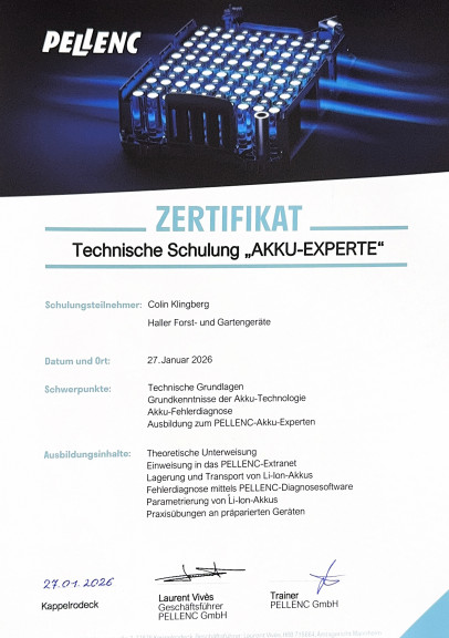 Haller Forst & Gartengeräte – Ihr Fachhändler in Lahr und Umgebung Sie suchen zuverlässige Forsttechnik, leistungsstarke Gartengeräte oder robuste Maschinen für Garten und Wald? Dann sind Sie bei Haller Forst & Gartengeräte in Lahr genau richtig. Wir bieten mehr als nur Verkauf: Unser Service hält Ihre Technik am Laufen. Unsere Leistungen: - Fachkundige Beratung durch erfahrene Mitarbeiter - Verkauf hochwertiger Markenmaschinen und Zubehör - Inspektion, Wartung und Reparatur aller gängigen Geräte - Kettenschärfen sowie Hol- und Bringservice auf Wunsch Damit Ihre Maschinen dann funktionieren, wenn Sie sie brauchen. Ob Motorsäge, Rasenmäher oder Rasenroboter – wir sorgen für Zuverlässigkeit, Sicherheit und Langlebigkeit. Besuchen Sie uns in Lahr oder vereinbaren Sie einen Servicetermin – das Team von Haller Forst & Gartengeräte ist für Sie da.